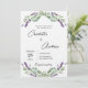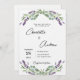 A white background decorated with lavender flowers and eucalyptus greenery. Personalise and your names and details.