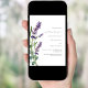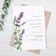 A white background decorated with a large lavender flower and eucalyptus greenery sprig. Personalise and your names and details.