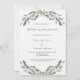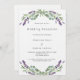 A white background decorated with lavender flowers and eucalyptus greenery. Personalise and your names and details.