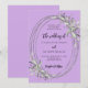 A lavender coloured background. Decorated with greenery and an oval frame. Personalise and add your names and details.