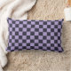 A vibrant chequered pattern with alternating black and lavender squares creates a bold, symmetrical grid. The design is balanced and visually striking.