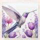Lavender Hummingbird surrounded by flowers Glass Coaster