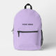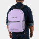 Easily personalize this simple and cool backpack adding your name or custom text. A cool and modern design in cute lavender light purple featuring clear sans serif font, for a modern, professional and edgy look, perfect as custom gift for college students, high school, kids. The backpack can be customized in any color and any font. No minimum.