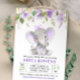 Lavender Lilac Purple Girl Elephant Baby Shower Invitation