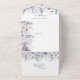 A romantic watercolor arrangement of soft blooms graces this all-in-one wedding invitation with timeless charm. Delicate shades of purple and lavender cascade through the edges, accented by wisps of green foliage and fine golden branches that offer a gentle shimmer. The florals seem to frame an invisible promise at the centre, creating a harmonious border that draws the eye inward. With its blend of natural elegance and light painterly texture, the design feels both ethereal and warm—perfectly suited to celebrate love in full bloom. Easy to personalise with your own information.