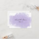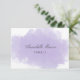 This place card features a pretty lavender watercolor mist. Background colour and text fields can be customised to your liking.