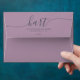 Add timeless elegance to your mail with this Lavender Mist return address envelope, featuring chic black script on a soft purple background. Ideal for weddings, bridal showers, and formal invitations, the combination of delicate colour and bold lettering ensures your correspondence leaves a lasting impression.
