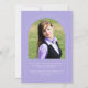This lavender simple minimalist arch graduation announcement features a delicate arch frame, 2 photo templates and elegant modern typography.