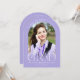 This lavender simple minimalist arch graduation announcement features a delicate arch frame, 2 photo templates and elegant modern typography.