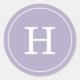 A round lavender coloured wedding sticker design with a white monogram that can be personalised with your initial. Perfect for sending with wedding invitations.