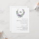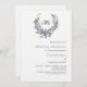 A white background decorated with a lavender flower and eucalyptus greenery wreath, crest. Personalise and your monogram, names and details.