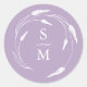 A modern yet elegant purple monogram wedding sticker features unique lavender line art. Use the template fields to customise the bride and groom's initials. Customise the colour to suit your wedding theme. Perfect for wedding favours and envelope seals. To see more minimalist stickers like this visit www.zazzle.com/dotellabelle