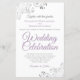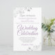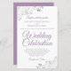 These affordable, budget friendly wedding invitations are the perfect choice for class, style, and beauty on a budget. The larger sized design features lavender purple coloured text on a classic white background with ornate silver grey curls and swirls in the corners. The typography includes fancy script lettering for a style that is at once simple and elegant. Wonderful way to invite your friends and family to share in your joy on your special day without breaking the bank.