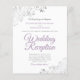These affordable, budget friendly wedding reception invitations are the perfect choice for class, style, and beauty on a budget. Designed for guests who are invited to the reception but not the ceremony, they feature a classic white background with ornate silver faux foil lace frills in the corners. The typography includes fancy lavender purple script lettering for a style that is at once simple and elegant. Wonderful way to invite your friends and family to share in your joy on your special day without breaking the bank.