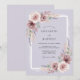 This design features a soft lavender background adorned with delicate watercolor florals in shades of mauve and dusty rose. Lush roses and ethereal sprigs are complemented by sage green eucalyptus foliage, creating a dreamy and serene atmosphere. The painterly botanical elements evoke a sense of elegant artistry perfect for a springtime or bohemian event.