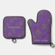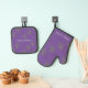 This oven mitt and pot holder set features a timeless lavender pattern reminiscent of the nineteenth century. With a purple background, it is ideal for bringing a Provencal flair to parties or kitchens. Personalise them with her name today.