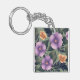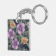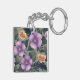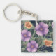 Lavender & Peach Flowers on Olive Green Background Key Ring