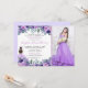 Designed as a horizontal layout, the left side showcases the floral artwork and invitation details, while the right side includes space for a personal photo of the birthday girl, making it even more special. The back features a soft light purple background with a sparkling purple tiara, adding a subtle regal touch.