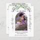 A modern wedding Save the Date photo card. Decorated with lavender florals, flowers and eucalyptus greenery. Personalise and add your photo, wedding details and your own qr code to your wedding website.