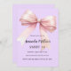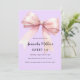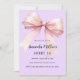 A soft lavender, purple coloured background, decorated with a large pink bow. Personalise and add a name and party details.
