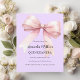 A soft lavender, purple coloured background, decorated with a large pink bow. Personalise and add a name and party details.