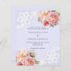 For an elegant and romantic wedding. A lavender coloured background decorated with pink and rose gold florals, roses and lace. Personalise and add your names and details.