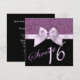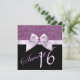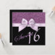 A pretty lavender pink faux glitter background on the top, paired with a dramatic black solid bottom, and a white ribbon and bow are the features of this distinctive Sweet 16 Birthday party invitation. The white bow has a shimmery lavender pink faux jewel centre. The script text Sweet 16 appears in lavender pink and white against the black background. There is plenty of room on the black back for your information. If you need to change the font, size, or location of the text, use Customise It. Very elegant and glamourous! *Please note - the image is printed on the card, which contains no glitter, ribbon, or jewel substance.*