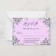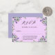 A RSVP card decorated with lavender flowers and greenery. Pink background. Personalise and add the reply by date.