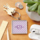 This beautiful keychain features a classic white damask pattern over a lavender or dusty purple background. The design is personalised with a monogram initial letter as well as a customisable name for a simple yet elegant look. Perfect gift for any woman who wants a personalised keychain.