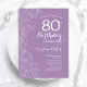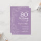 Lavender Purple Floral 80th Birthday Party Invitation. Minimalist modern design featuring botanical outline drawings accents and typography script font. Simple trendy invite card perfect for a stylish female bday celebration. Can be customised to any age. Printed Zazzle invitations or instant download digital printable template.