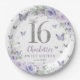 Lavender Purple Floral Butterflies Sweet 16 Paper Plate
