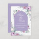 This lavender-purple wedding save-the-date card features white and purple watercolor peonies, lavender, geometric shapes, and typography. Ideal for an outdoor wedding. Find matching items in Lavender Purple Floral Wedding Collection. A printable file is available.