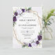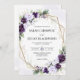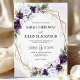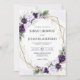Invite your loved ones to celebrate your special day with my Lavender and Plum Purple Floral Geometric Wedding Invitation. This design combines enchanting hues of lavender and deep plum purple florals with delicate eucalyptus greenery. Gold geometric elements encase and highlight your important details. The blend of soft and rich purple tones exudes romance and sophistication, making it a perfect choice for couples who want an invitation that feels both timeless and elegant but also modern yet whimsical. This invitation design goes well with majority of settings and different celebrations but always paired best in weddings set in charming gardens, vineyards, or elegant indoor venues.