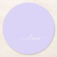Lavender Purple Modern Script Girly Monogram Name Round Paper Coaster