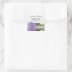 These wedding return address envelope seals feature a unique square shape designed to show off the beautiful artwork, which features a single long stemmed lavender purple coloured rose lying on its side reflecting in a pool of water with ripples and waves. The lettering is done in elegant script calligraphy. Beautiful way to add class and style to your wedding mailings.