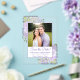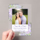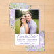 These beautiful acrylic cards are a special and unique way to let your friends and family know to save the date for your upcoming wedding. The rustic design features your photo surrounded by hand painted watercolor roses in shades of dusty purple, lilac, and lavender. There is room below for your names, the wedding date and location. Stunningly beautiful way to begin your wedding journey.