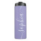 Enjoy your beverages in this soothing Lavender Purple Thermal Tumbler with an elegant white script design.