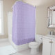 A pretty geometric shower curtain with a simple lavender, purple and lilac flower pattern.