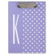 Cute, customisable white monogram on chic Lavender Purple & White Polka Dots pattern. Cool, girly design with large, custom, vertical personalised monogram. Great trendy gift for kids, teens, teenagers, or adults!