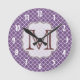 Lavender Quarterfoil Lattice Quarter Foil Monogram Initial Personalised Custom Fabric Pattern Wall Clock