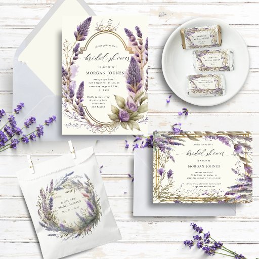 Our bridal shower collection "Lavender Regal Floral" features beautiful watercolor lavender floral with golden regal elements paired with an elegant typography for a perfect bridal shower. Nature inspired but with that regal accent this collection is ready for your destination or stay at home nature inspired bridal shower. Check our store for more matching items from this collection.