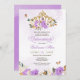 Quinceanera invitation in lavender lilac purple with butterflies and a beautiful floral tiara . Visit shop for more variations including options with dolls in gowns in many skin tone and colour combinations