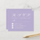 A simple, minimalist budget RSVP for a wedding. It has only white text on lavender (purple) background. The title RSVP and the letter M are written in an elegant calligraphic script, the rest in caps.