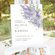 Soft lavender blooms paired with sage green foliage create a timeless garden-inspired look, while the clean layout allows couples to clearly present ceremony, reception, and important guest information.