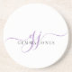 Lavender Script Initials Monogram Minimalist Coaster