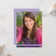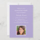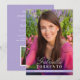 Make it personal with this elegant graduation party invitation featuring a full senior portrait with the graduate's name in sweeping white script and last name in bold serif, accented by a coordinating lavender colour bar. The back keeps all celebration details beautifully organised with script and serif typography on a solid lavender background. Fully customisable name and text fields on both sides.