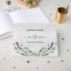 A faux silver looking background decorated with lavender florals and eucalyptus greenery. Mr and Mrs with a heart. Personalise and add your names and wedding date.