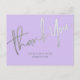 Lavender pastel Purple and silver Thank You Elegant Universal Postcard featuring modern script calligraphy text in faux gold foil