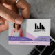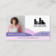 Stylish business card for a realtor, small business owner, office worker, consultant or more in shades of purple with hills and slopes. Add your profile photo and logo.