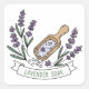 Add a calming botanical touch to your bath and body packaging with this lavender soak bath salt label featuring a wooden scoop filled with bath salts surrounded by delicate lavender sprigs.